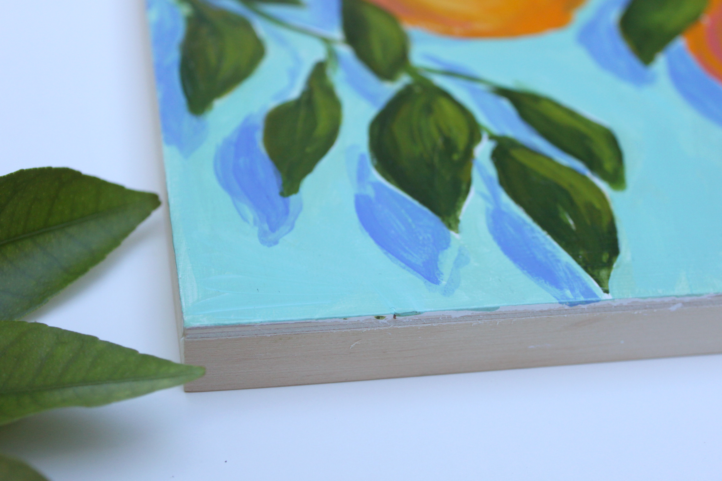 The inspiration for this painting series was sparked by a winter afternoon spent picking fresh lemons from our friend’s backyard lemon tree and returning again a month or two later to pick fresh oranges as well. The abundance of citrus fruits and blossoms in the winter and spring in New Orleans is always a highlight of the season. Smelling orange blossoms on my neighborhood walks, admiring the contrast between fruit trees and colorful front porches, and seeing kumquats used in floral arrangements — I love the beauty and presence of these plants, as well as the nourishment they provide. I enjoyed paying tribute to them as well as exploring color, shape, and shadow in this collection.
