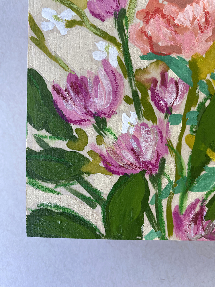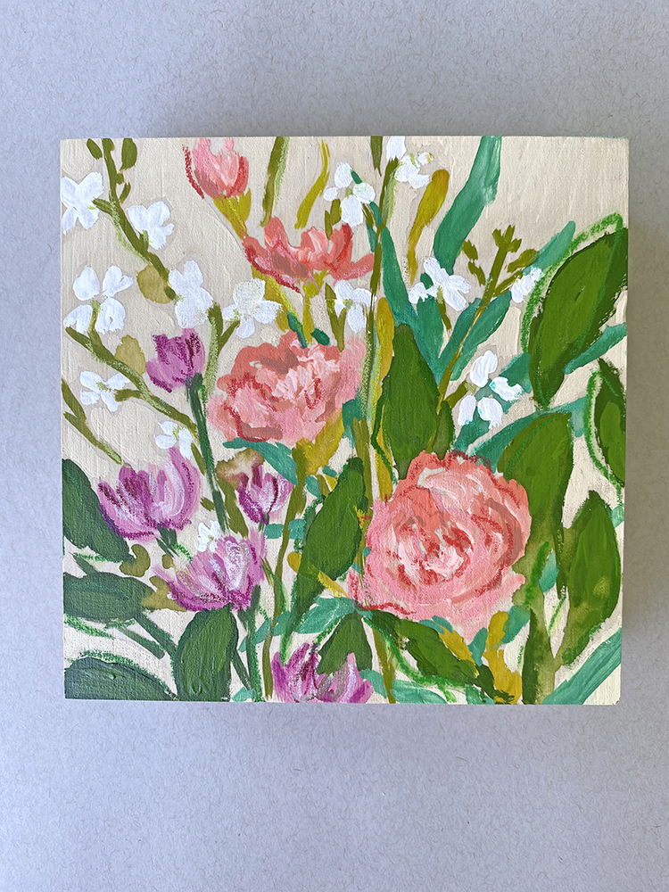 Conservatories, Orangeries, Greenhouses and Sunrooms — all places filled with light to grow plants in special, regulated conditions. Just like plants, during this quarantine we’ve also been forced to grow inside with special, regulated conditions. Working on these paintings has been a light filled addition to pandemic life, a bringing of the outdoors inside. I worked on these paintings during not only the quarantine, but over Earth Day and Mental Health Awareness Month. They left me thinking more than ever about how important plants, flowers, and nature are to our mental health and well-being.