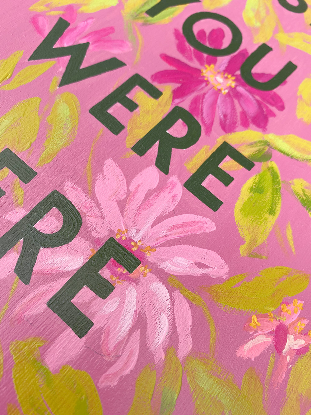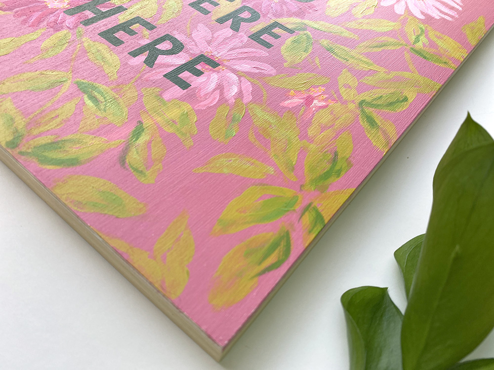 About the Floral Poetry Collection: These mantras and words of endearment started as positive affirmations when I was struggling with postpartum depression, then they carried me through my frustration during a series of unfortunate events this summer, and then finally through the loss of my dad and the grief I’ve been working through since then. Every moment of life isn’t always great, but I truly believe it will always be okay in the end. Every day I try to see the good and remember life is worth living. We are never without pain or sorrow, but the world is still full of so much beauty. My hope is that the messages behind these paintings will resonate with you too. Joy and sorrow can co-exist. We can both love and struggle at the same time. We can simultaneously acknowledge our pain and be positive and uplifting. I enjoyed playing with the juxtaposition of words and florals in this series, along with the weight and meaning we assign to various words and sentiments.
